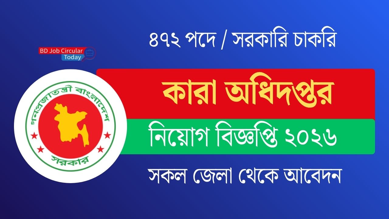 ৪৭২ পদে কারা অধিদপ্তর এ নিয়োগ বিজ্ঞপ্তি প্রকাশিত | কারা অধিদপ্তর নিয়োগ বিজ্ঞপ্তি 2026 | Prison Job Circular 2026 | কারা অধিদপ্তরে ৪৭২ পদে নিয়োগ বিজ্ঞপ্তি প্রকাশ | কারা অধিদপ্তর ৪৭২ পদে কারারক্ষী ও মহিলা কারারক্ষী পদে নিয়োগ বিজ্ঞপ্তি প্রকাশ করেছে।