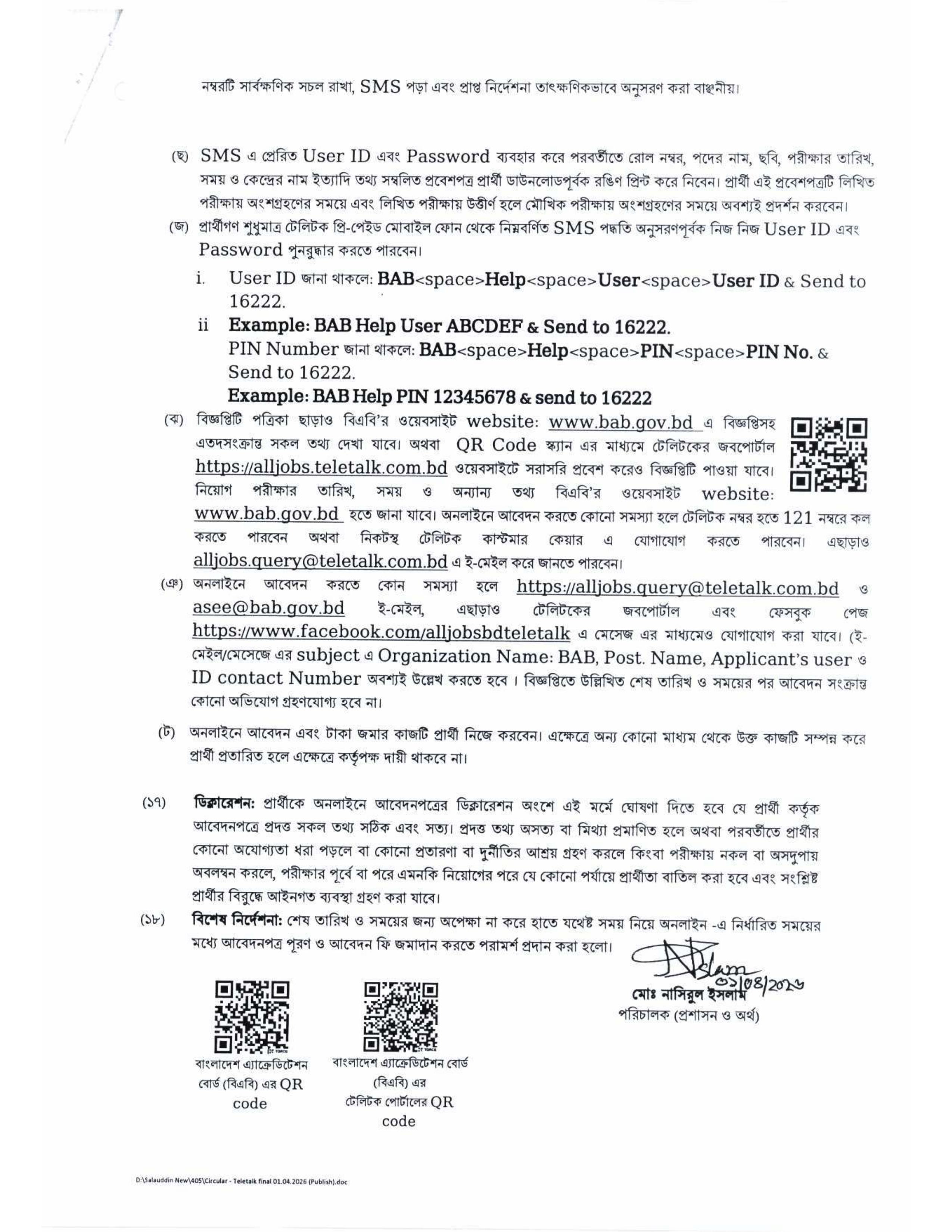 আবেদন লিংকঃ http://bab.teletalk.com.bd