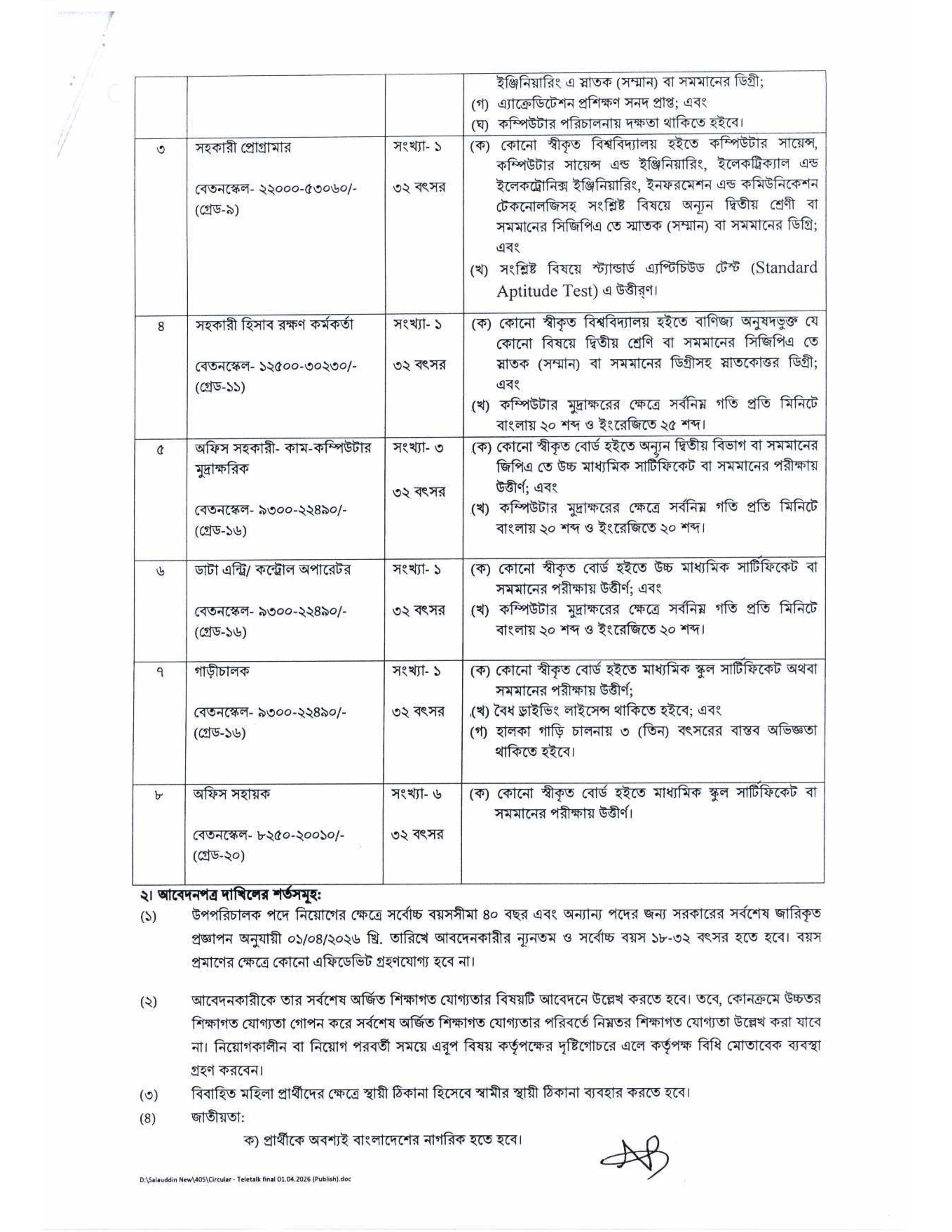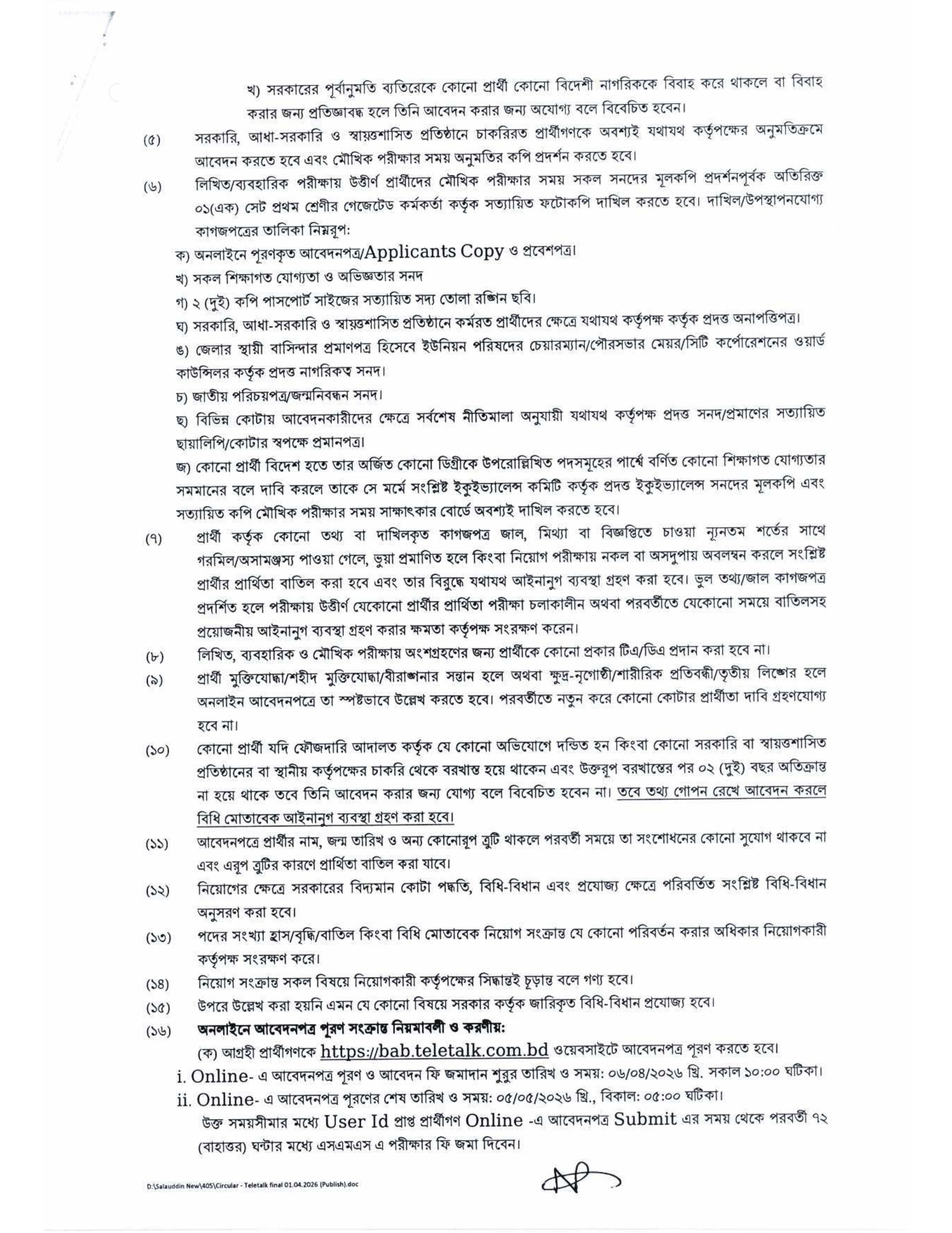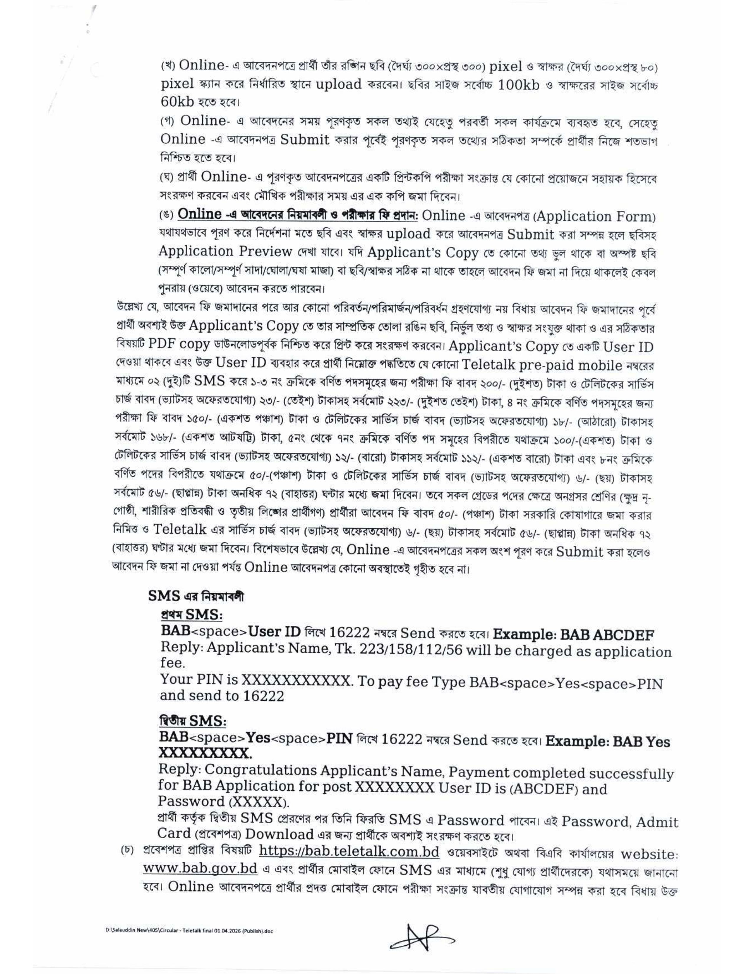 আবেদন লিংকঃ http://bab.teletalk.com.bd