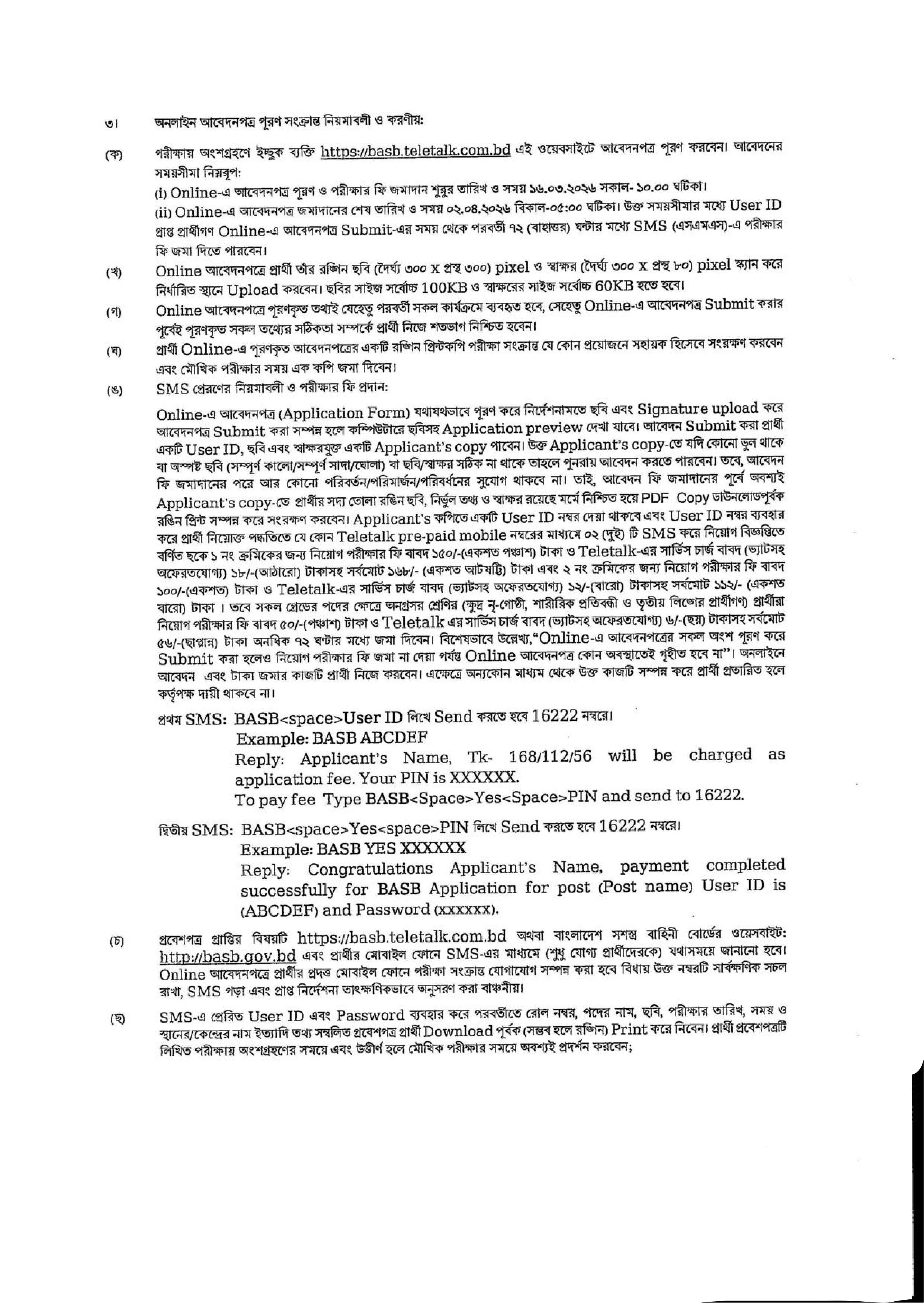 আবেদন প্রক্রিয়া: আগ্রহী প্রার্থীরা অনলাইনে https://basb.teletalk.com.bd এই লিংকের মাধ্যমে আবেদন করতে পারবেন।