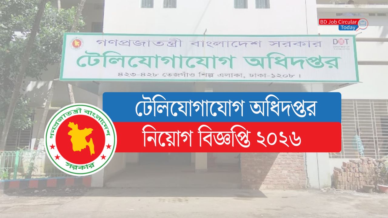 টেলিযোগাযোগ অধিদপ্তর নিয়োগ বিজ্ঞপ্তি ২০২৬ | telecomdept job circular 2026 | টেলিযোগাযোগ অধিদপ্তর নিয়োগ ২০২৬ | Department of Telecommunications Job Circular 2026 | টেলিযোগাযোগ অধিদপ্তর (ডিওটি), তেজগাঁও, ঢাকা এর নিম্নলিখিত রাজস্ব খাতভুক্ত শূন্য পদসমূহে অস্থায়ীভাবে সরাসরি নিয়োগের লক্ষ্যে বাংলাদেশের নাগরিকদের নিকট হতে https://telecomdept.teletalk.com.bd ওয়েবসাইটে নির্দিষ্ট সময়ের মধ্যে অনলাইন (Online) এ আবেদন পত্র আহবান করা যাচ্ছে। অনলাইন (Online) ছাড়া অন্য কোন মাধ্যমে দেয়া আবেদনপত্র গ্রহণ করা হবে না।